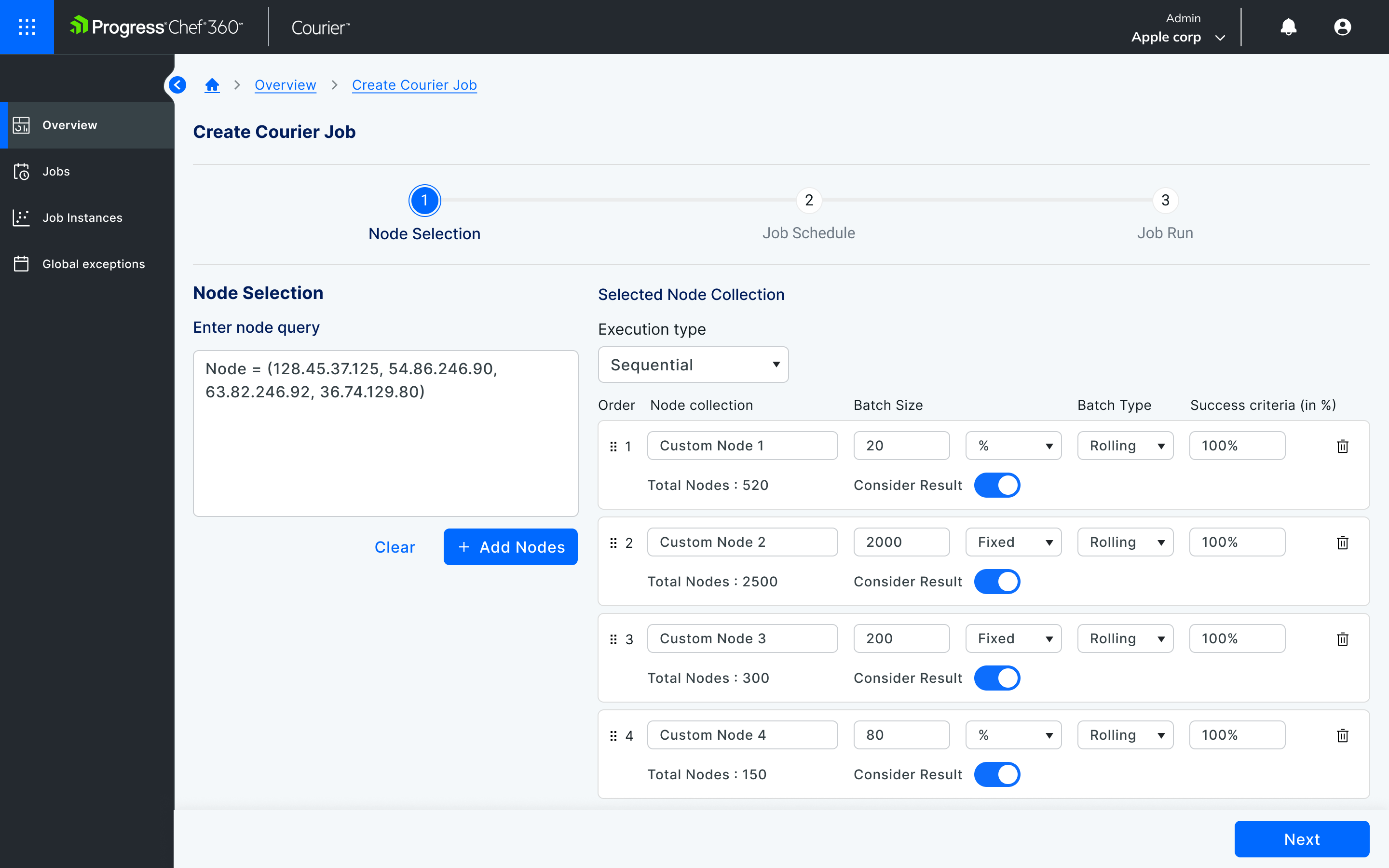 Enable users to target any node using IDs, queries, saved lists, or custom parameters and execute jobs in sequential, parallel or batched patterns.
