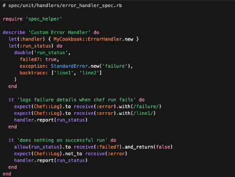 Uses mocking to isolate handler logic from Chef runtime