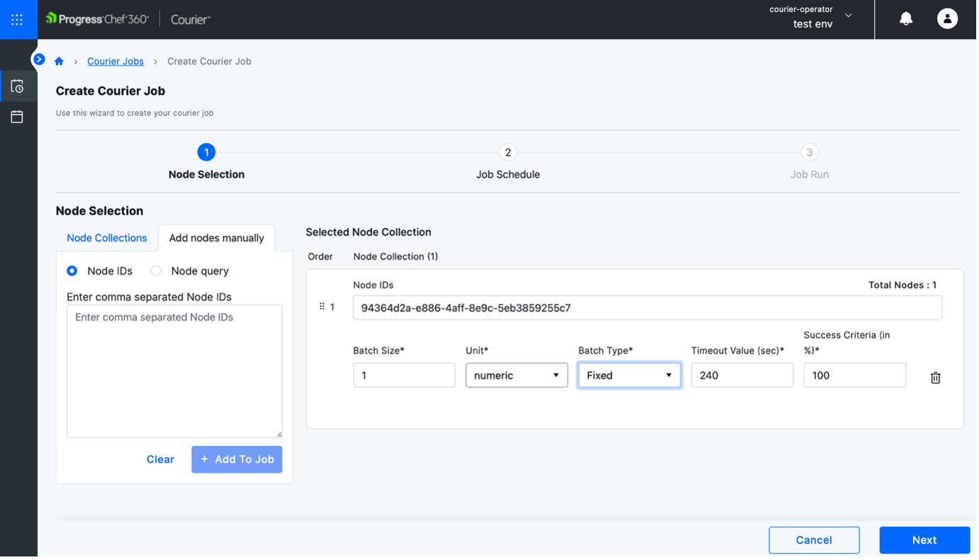 - Step 2: Select Add Nodes Manually, enter the Node ID and configure batch size, unit, type, timeout and success criteria