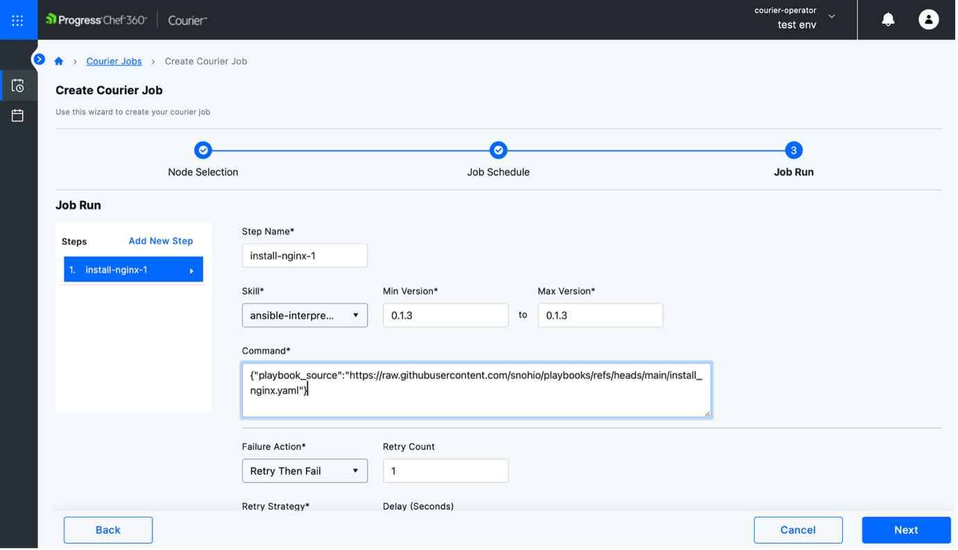 Now that the Ansible Interpreter is set up, let’s create a job to run your Ansible playbook in Chef 360. Here’s how: