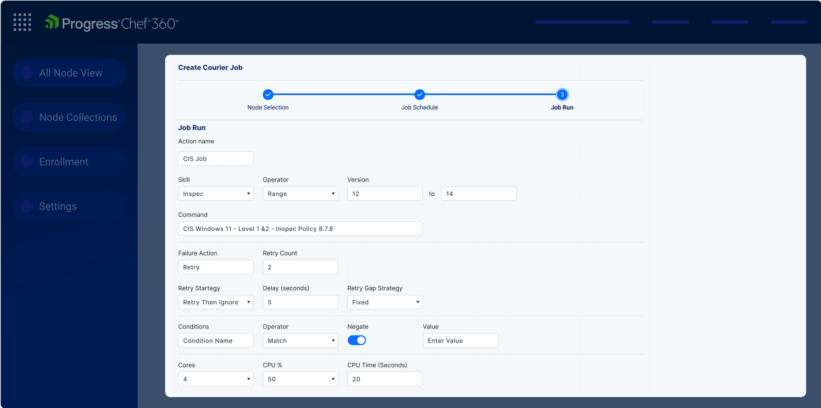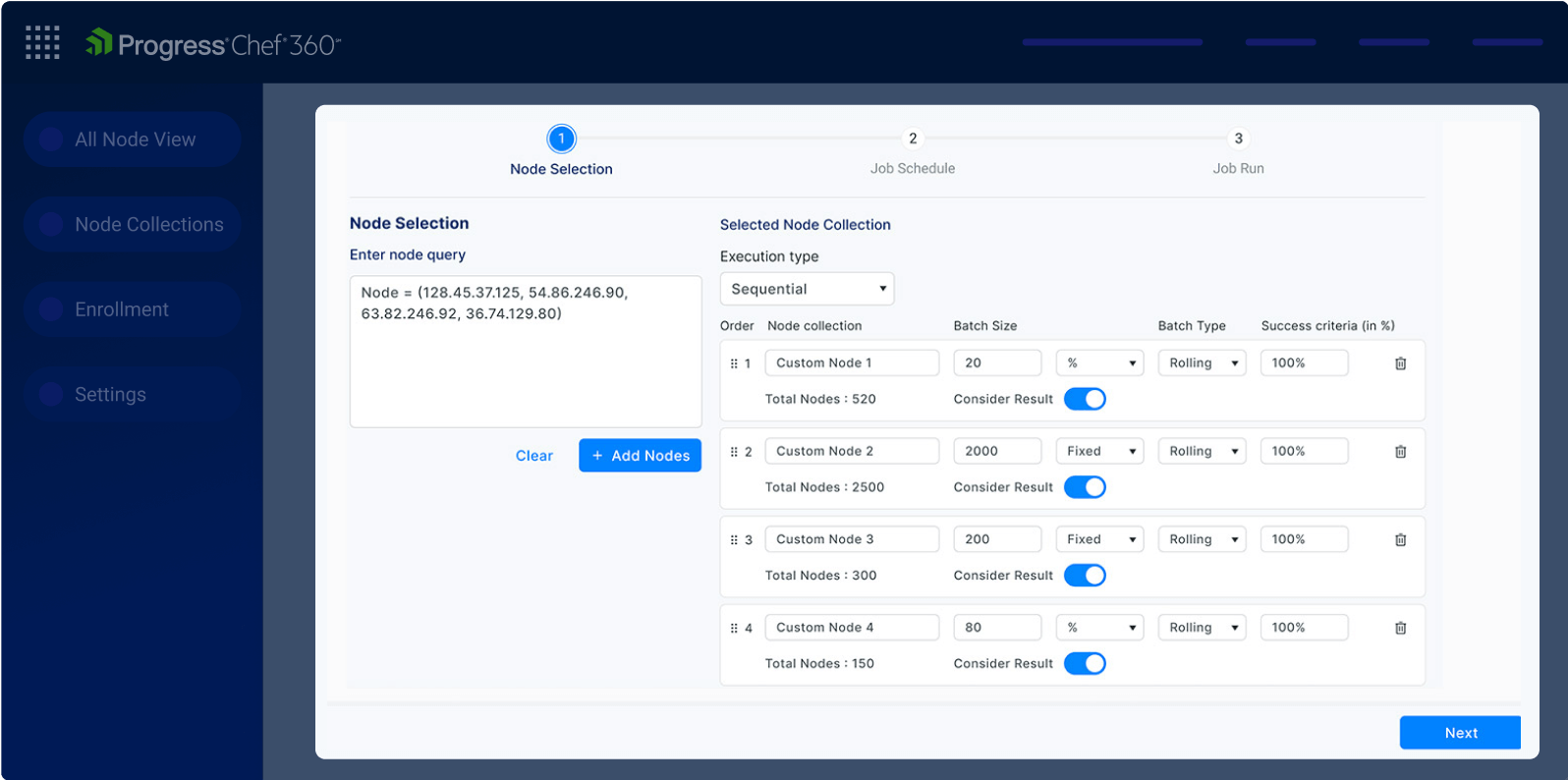 Enable users to target any node using IDs, queries, saved lists, or custom parameters and execute jobs in sequential, parallel or batched patterns.
